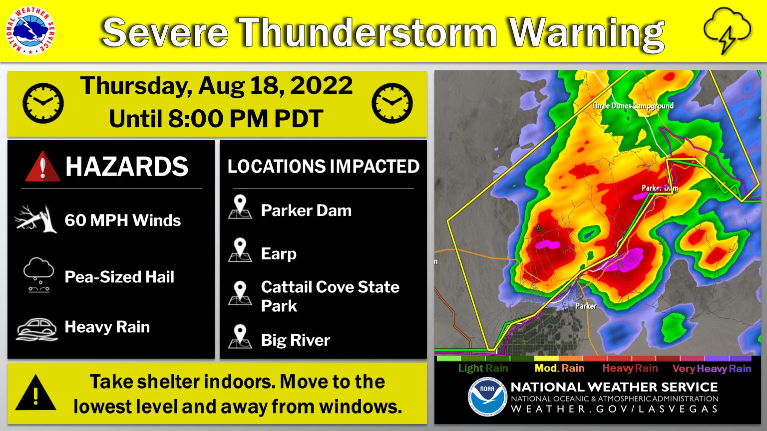 Nws Las Vegas On Twitter Severe T Storm Warning Areas Included Parker Dam Earp Big River Until 8 Pm Mst Wind Gusts In Excess Of 60 Mph Are Possible With