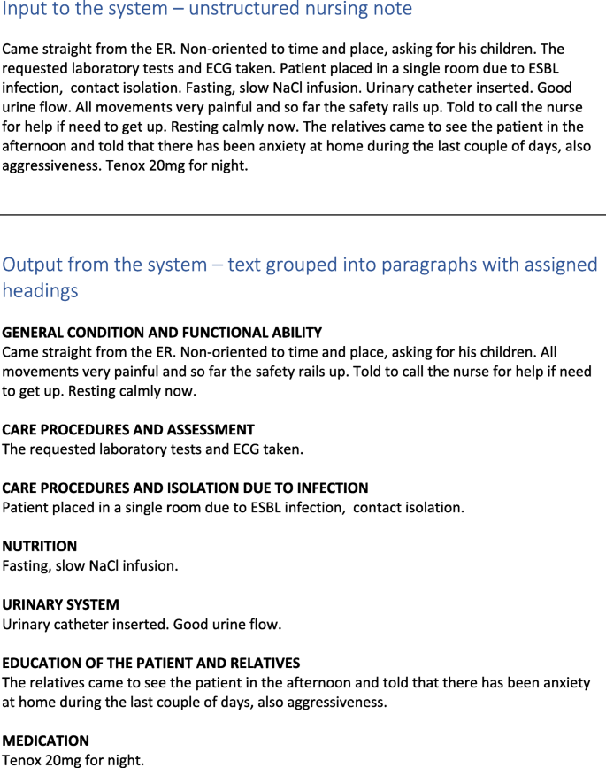 Assisting Nurses In Care Documentation From Automated Sentence Classification To Coherent Document Structures With Subject Headings Journal Of Biomedical Semantics Full Text